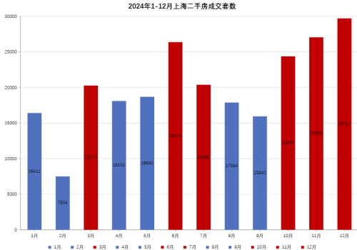 2024年9月29日,“沪七条”再度加码,外地户籍购房社保3年改为1年,增值税免征年限5改2、房贷利率下降等,释放了大量外地单身购买力,并大幅降低二手房交易成本。二手房成交量因而在年末收获“三连涨”,10月为2.44万套,11月为2.71万套,12月为2.97万套。